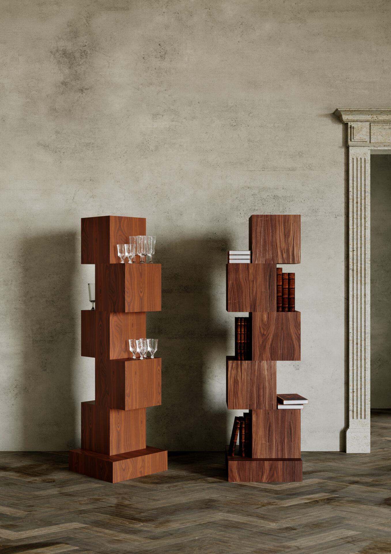 MDF remains central to her practice, offering a reliable structure with razor-sharp edges. Combined with carefully selected veneers, it delivers the illusion of solidity—without the physical weight. “Geometry is core to my work,” she notes. “Maybe because I’m a rational person. But the veneer brings a warmth that offsets the precision.”