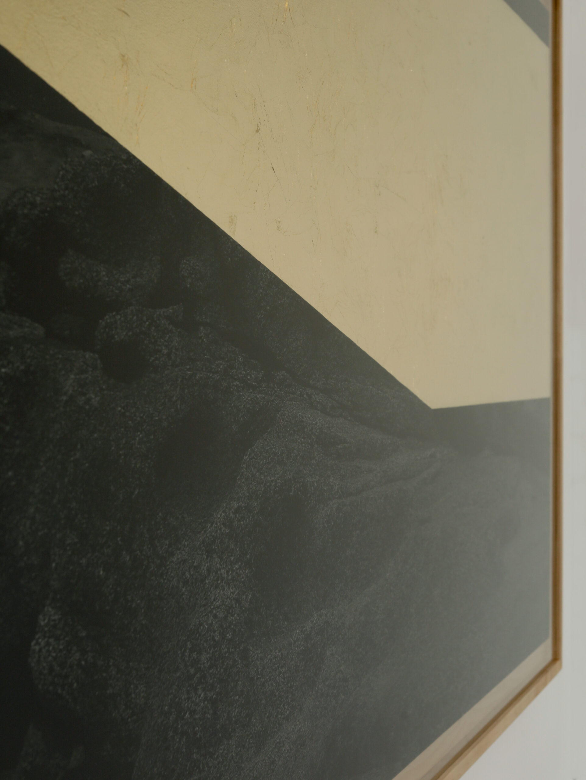 Archetypes in art are universal structures and symbolic patterns that repeat throughout history and cultures, representing fundamental concepts and emotions of the human experience. The term “archetype” comes from the Greek “archetypes”, meaning “original model” or “primitive pattern”. These archetypes are essential in the creation and appreciation of art, allowing artists and viewers to connect on a deeper and meaningful level. The artist Prince Láuder uses photographs taken by him on different surfaces in nature to generate a contrast with the geometric shapes of the proposed archetypes. Using collage, mixed techniques and gold leaf on photography, a new reading of the image is proposed through a new composition.