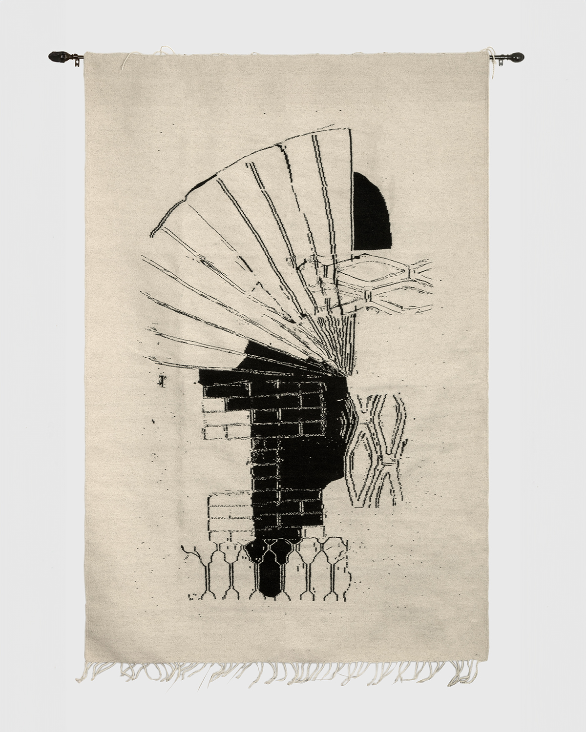 Desire Line is an ongoing body of work that offers a critique of the process of gentrification, displacement and desire in Mexico City. When completed, these weavings, designed from rubbings of condemned buildings in the eight colonias of Centro, will act as an abstract map of the city that is disappearing, not only in an effort to preserve collective memory but as an homage to the architectural spaces that house our sense of cultural and personal identity.