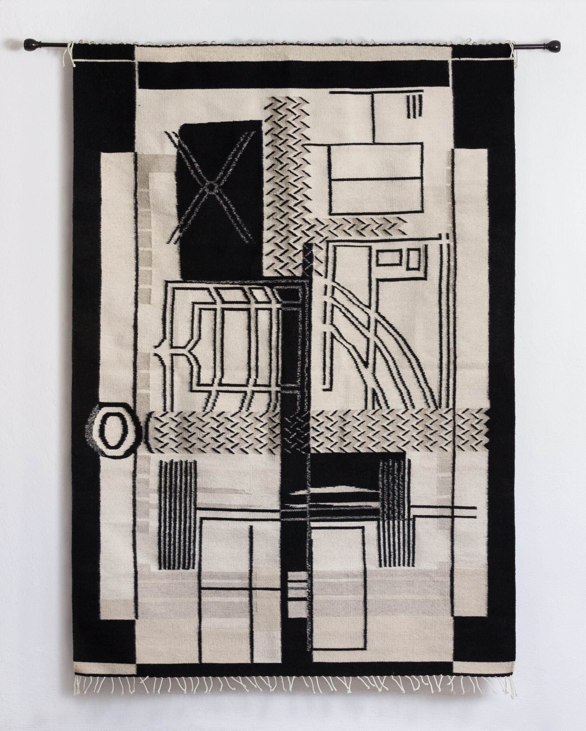 Col. Condesa is the third weaving in a series of eight that documents the destruction of architectural sites in the Centro area of Mexico City. As a whole, the project forms an abstract map of the city that’s disappearing due to the destructive application(s) of desire, gentrification and corporate greed. It is concerned with the preservation of cultural memory and with architectural space as a home for linguistic and historical encounters.