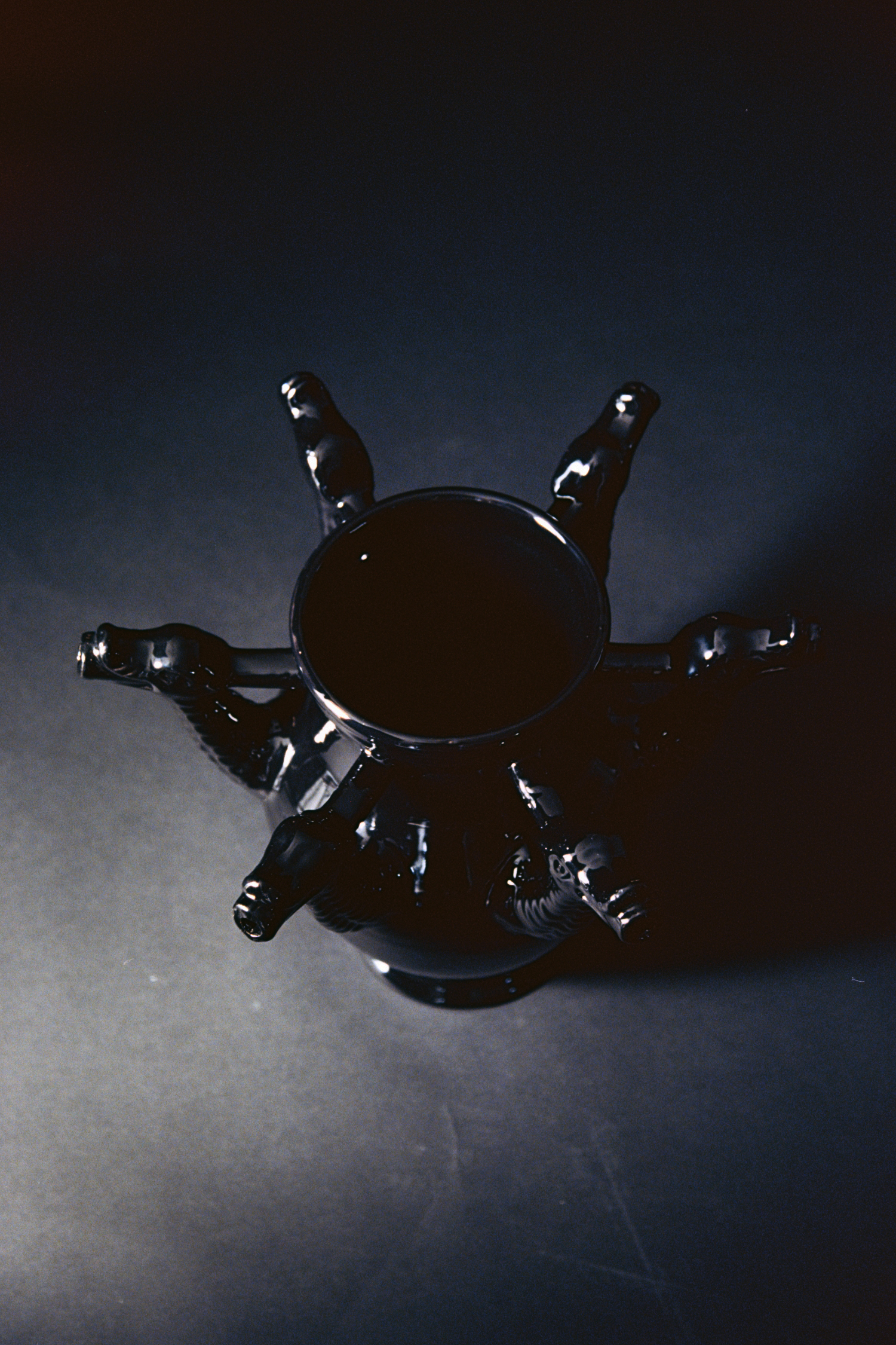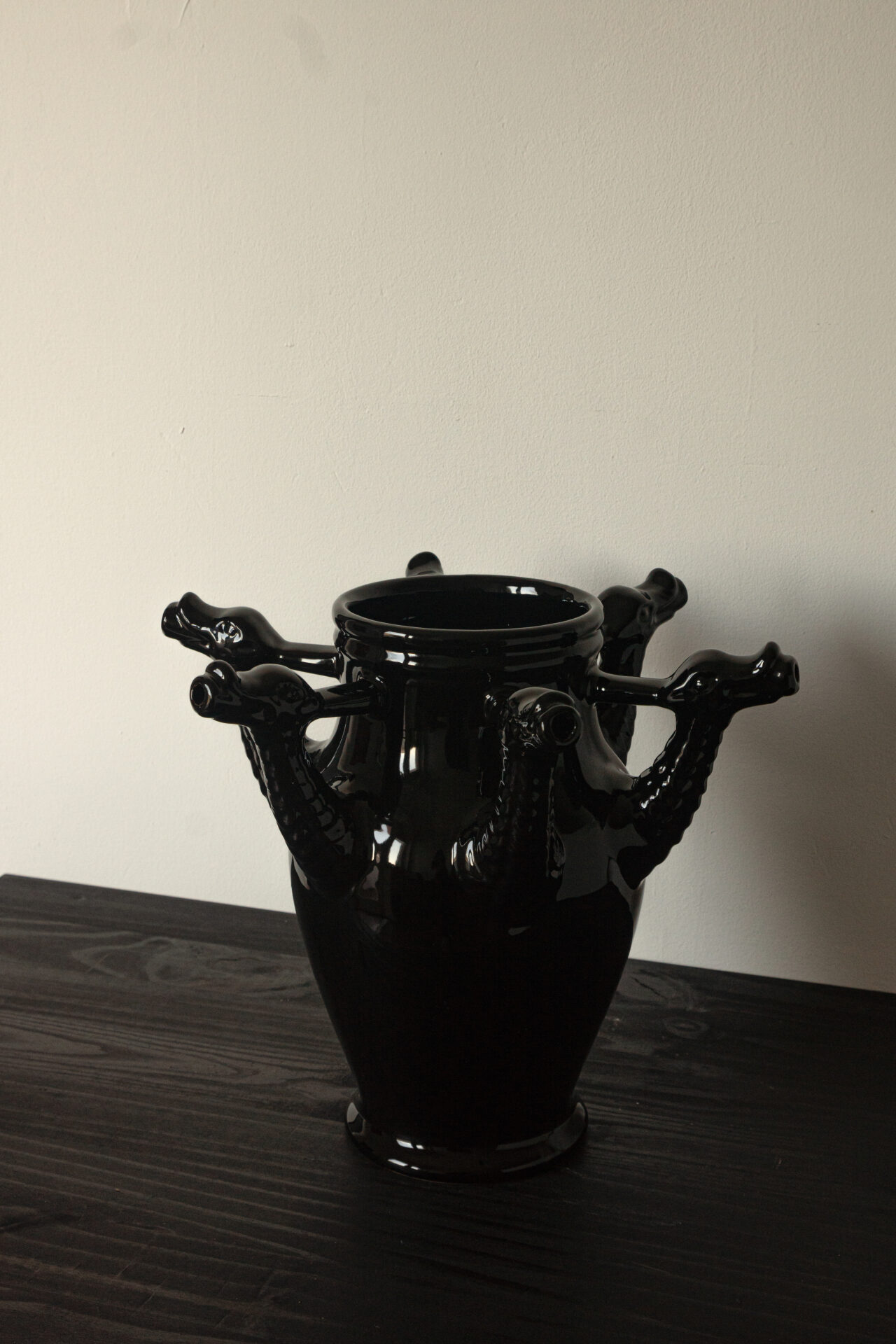 Inspired by the historic Castelli drug pots from the Orsini-Colonna collection, the Drago Vase reimagines the vessels once used by apothecaries to store herbal syrups. This ceramic piece features six hand-sculpted dragon heads, offering a contemporary take on an original pot created for a traditional wedding trousseau.