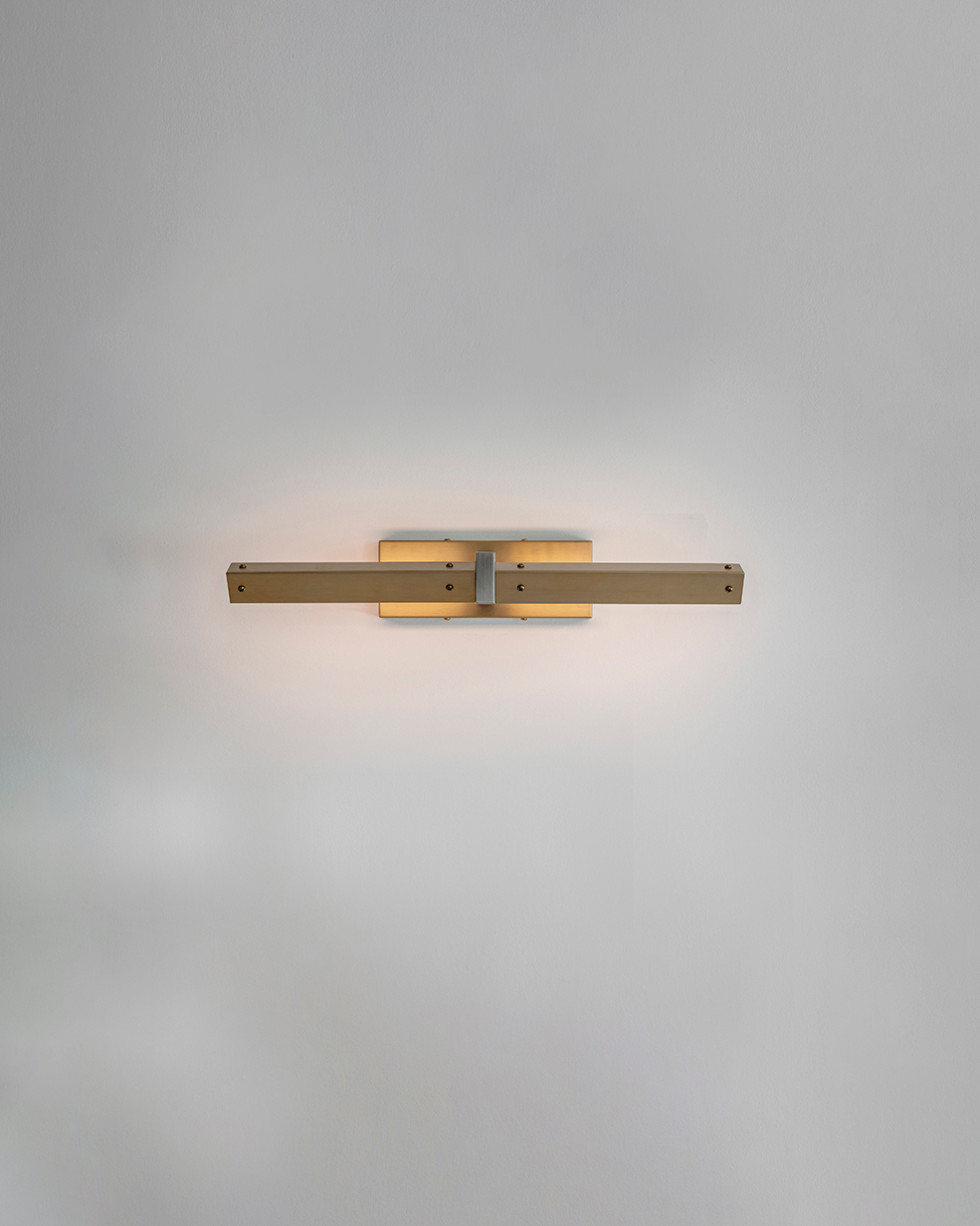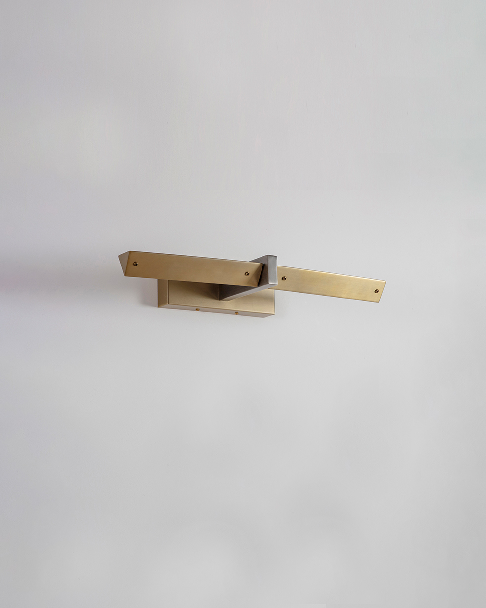 This sleek and modern picture light celebrates functionality of geometry. The rotatable brushed brass triangular shaped light source is connected to the rectangular arm and finished in a brushed grey colour. This picture light will bring a stunning addition to modern interiors.